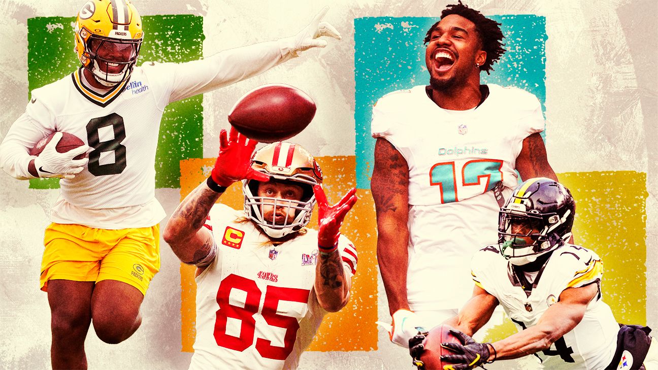 Par conséquent, vous verrez de nombreuses mesures qui utilisent des moyennes plutôt que des performances cumulées. Deux mesures qui reviennent souvent pour les receveurs sont les verges par itinéraire et la part cible. Les yards par parcours sont le nombre moyen de yards gagnés par un receveur lorsqu’il a parcouru un parcours éligible, qu’il ait attrapé le ballon ou qu’il ait même été ciblé sur le jeu. La part cible est le pourcentage de fois où un receveur de passe a été ciblé lorsqu’il parcourait un itinéraire. Aucune des deux statistiques n’est parfaite, mais chacune nous aidera à avoir une idée de si le receveur a été capable de créer des occasions lorsqu’il était sur le terrain. J’utiliserai aussi ESPN Mesures avancées de suivi futurqui utilise les données de NFL Next Gen Stats pour estimer leur impact à chaque instant.