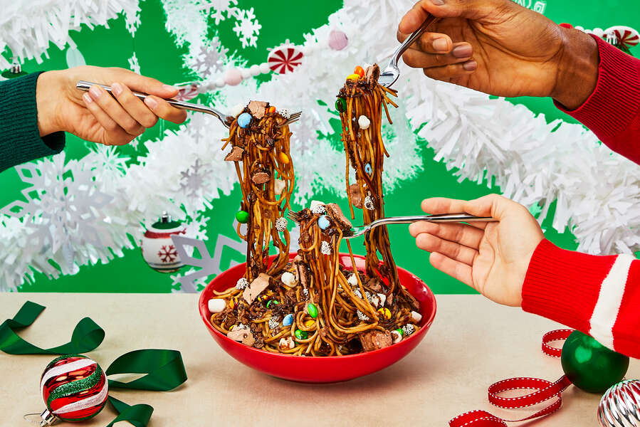 Bien que l’idée ait été inspirée par les spaghettis sucrés apparus dans le film nainNous avons créé une version de service au chocolat qui reste fidèle à Buddy the Elf, incorporant des grains de chocolat broyés, divers bonbons au chocolat, des guimauves et, bien sûr, du sirop », a déclaré HelloFresh Culinary Development Manager. Michelle Doll Olson a déclaré dans un communiqué de presse. « Notre objectif est toujours de créer des recettes à la fois délicieuses et amusantes à préparer, et nous sommes sûrs que cette super recette satisfera la dent de n’importe quel elfe de dessert tout en apportant l’esprit des fêtes dans votre foyer ! »