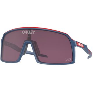 La version Tour de France des miroirs Sutro a incrusté un tube rouge sur les sourcils à l’aide d’une couche de base de position mate, avec plus de détails rouges sur les mains et un fond rouge derrière l’emblème Oakley blanc sur les tempes.